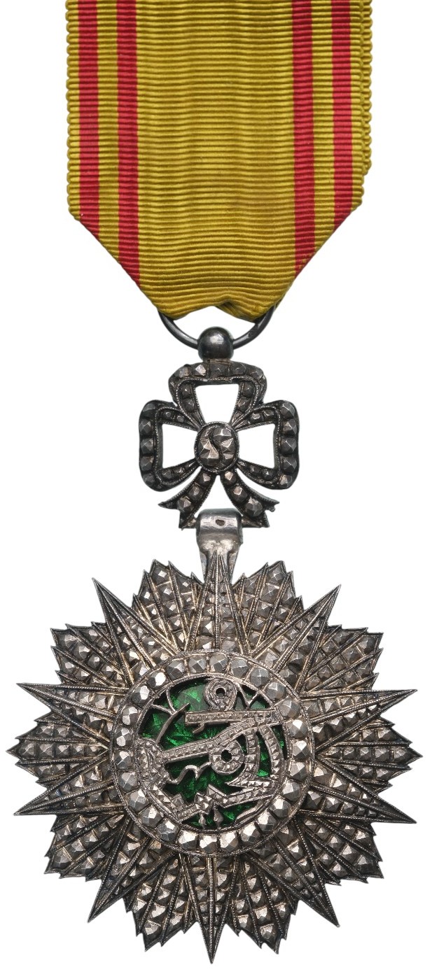Knight’s Cross, 5th Class, Muhammad al Habib (1922-1929. Breast Badge, 77x52 mm, Silver, one side enameled, original suspension ring and ribbon. A superb high jeweller's quality! I