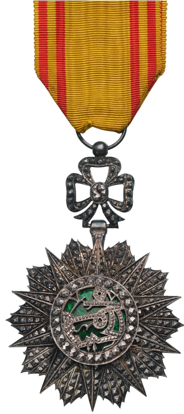 SKU: 1599 The Live Auction begins in: Click here to register for the live Auction Starting price 100 EUR Log in to place a bid. Total bids: 0TUNISIAKnight’s Cross, 5th Class, Muhammad al Habib (1922-1929. Breast Badge, 76x51 mm, Silver, one side enameled, original suspension ring and ribbon. A superb high jeweller's quality! I Shop ID: 69.73Auction LXX - Day 2