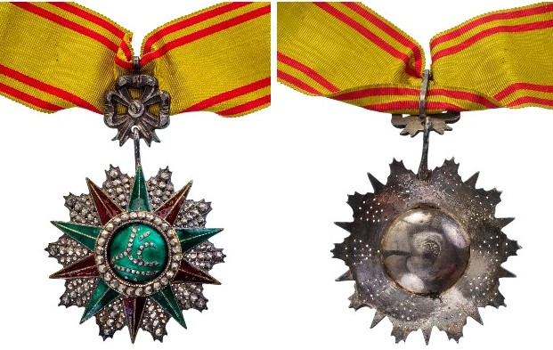 Commander’s Cross, 3rd Class, Ali Bey (1882-1902). Neck Badge, 95x58 mm, Silver, Tunisian hallmark, partially enameled, original suspension ring and ribbon.