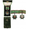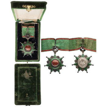 Commander's Cross, 3rd Class, instituted in 1862. Neck Badge, 81x64 mm, GOLD and Silver, both sides enameled, original suspension crescent, ring and ribbon, in original velvet case of issue, with gilt Toughra and class inscription on the lid. A superb badge, in extremely fine condition! I