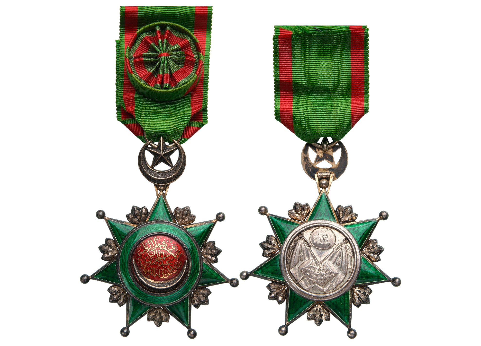 Officer's Cross, 4th Class, instituted in 1862. Breast Badge, 84x63 mm, Silver, both sides enameled, original suspension crescent, ring and ribbon with rosette. A superb badge, in extremely fine condition! I