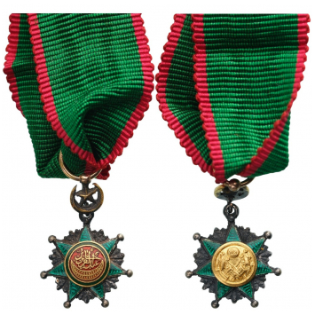 SKU: 1646 The Live Auction begins in: Click here to register for the live Auction Starting price 200 EUR Log in to place a bid. Total bids: 0TURKEYMiniature, instituted in 1862. Breast Badge, 17x12 mm, GOLD and Silver, both sides enameled, original suspension crescent, ring and ribbon. A superb miniature, in extremely fine condition! I Shop ID: NEXT 216Auction LXX - Day 2