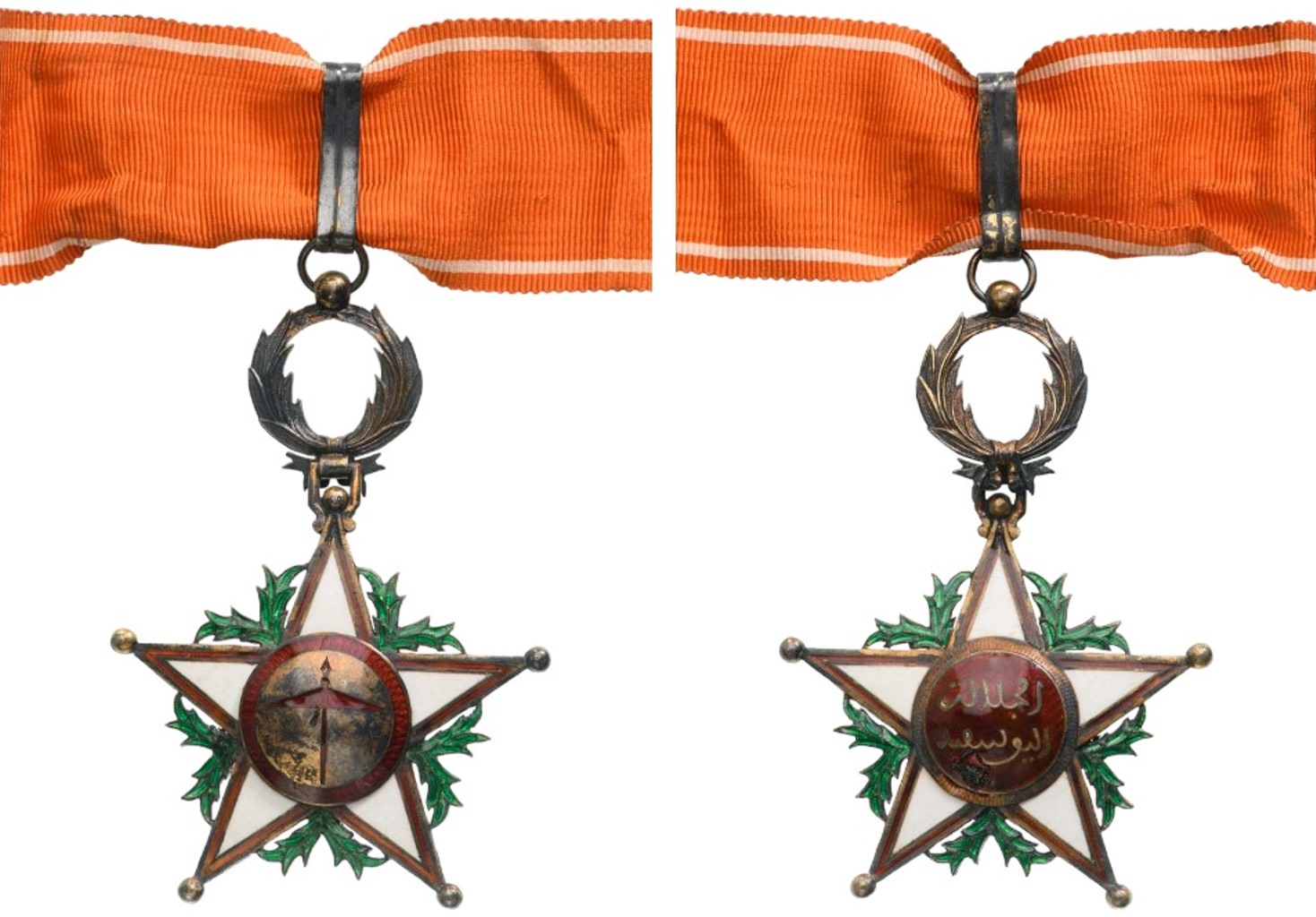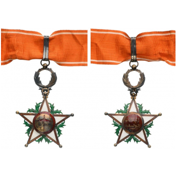 Commander's Cross, 2nd Type, 3rd Class, instituted in 1913. Neck Badge, 85x59 mm, gilt Silver, enameled (surface damage in center), original suspension wreath, ring and ribbon. A badge in very fine condition! II