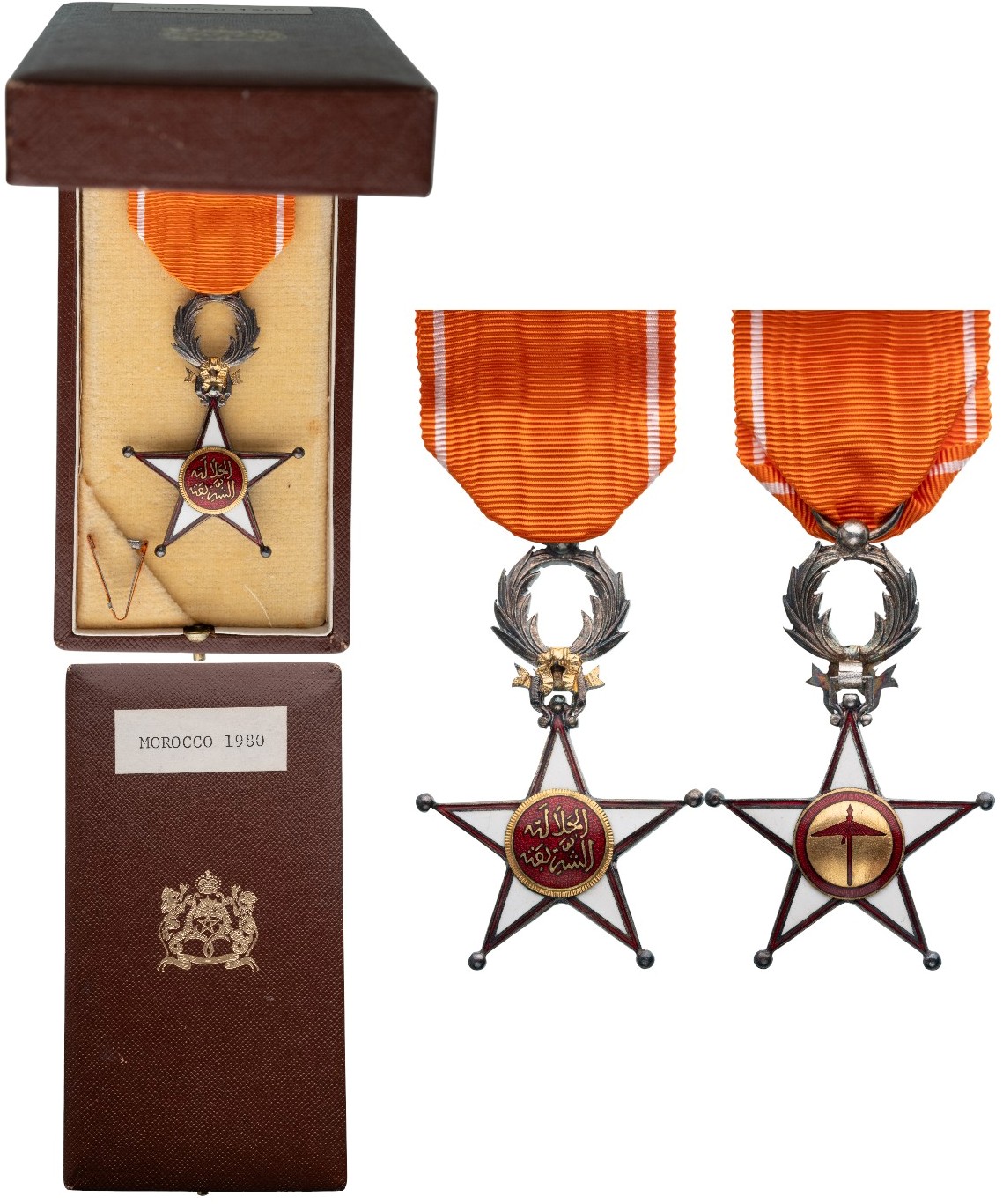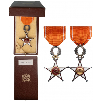 Knight's Cross, 5th Class, instituted in 1913. Breast Badge, 63x41 mm., Silver, both-sides enameled,original suspension ring and ribbon, in case of issue by "Arthus Bertrand - Paris" with gilt weapon on the lid and lapel bar. A beautiful cross, awarded to an British Official, in mint condition! I