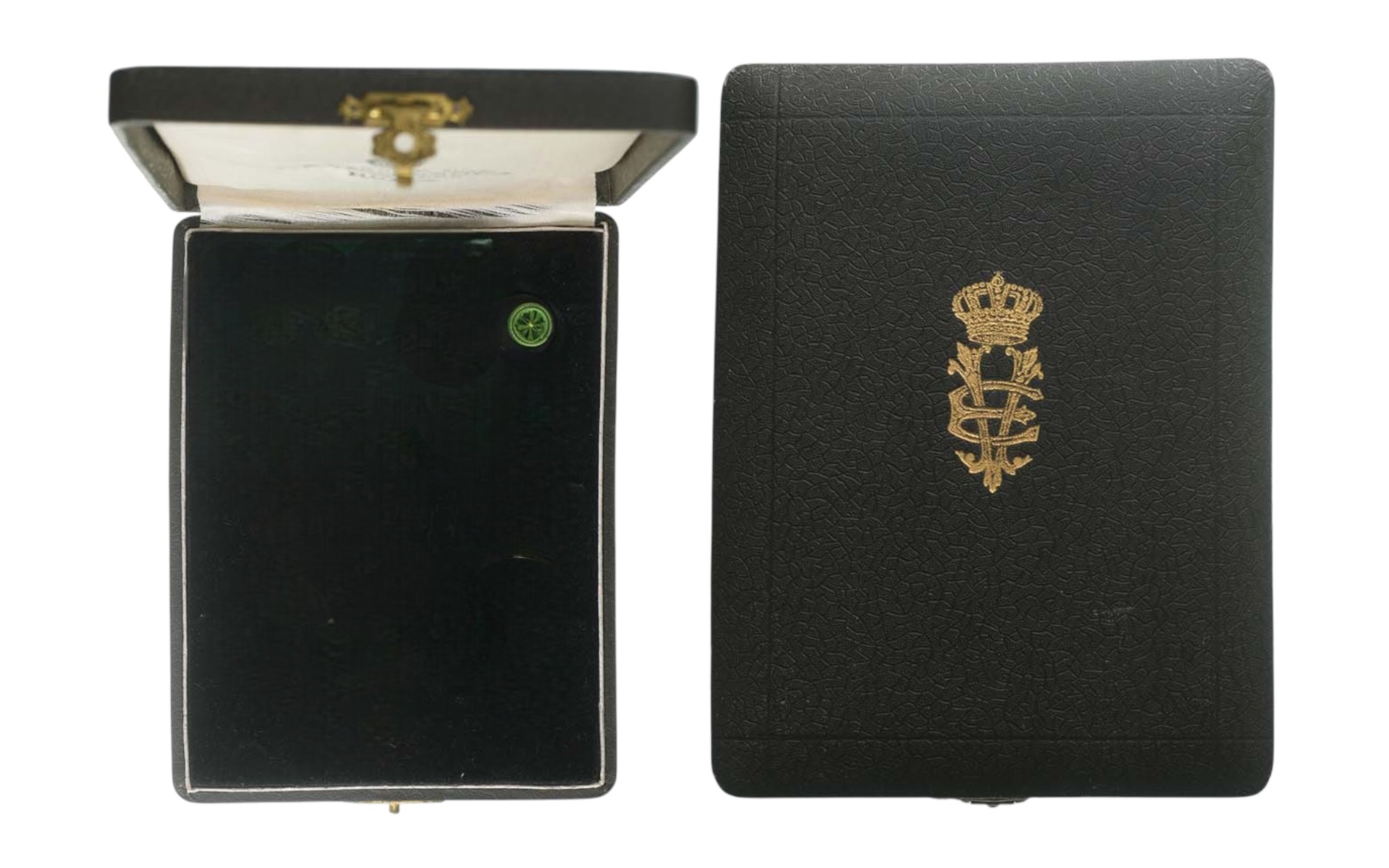SKU: 939 The Live Auction begins in: Click here to register for the live Auction Starting price 50 EUR Log in to place a bid. Total bids: 0ITALYCommander's Cross, instituted in 1572, Case of Issue. Case of issue by D. Cravanzola - Roma", with gilt monogram on the lid and commander's rosette. I Shop ID: 56.11.37Auction LXX - Day 2