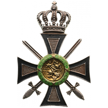 3rd Class Breast Star, 65x49 mm, gilt Silver, maker`s mark "Heinrich Weiss, Bucarest", the gold medallion on the obverse depicting St. George terrassing the dragon, on reverse medium pin. An extremely rare order in perfect condition, very seldom awarded exclusively for merits in war! I RR!