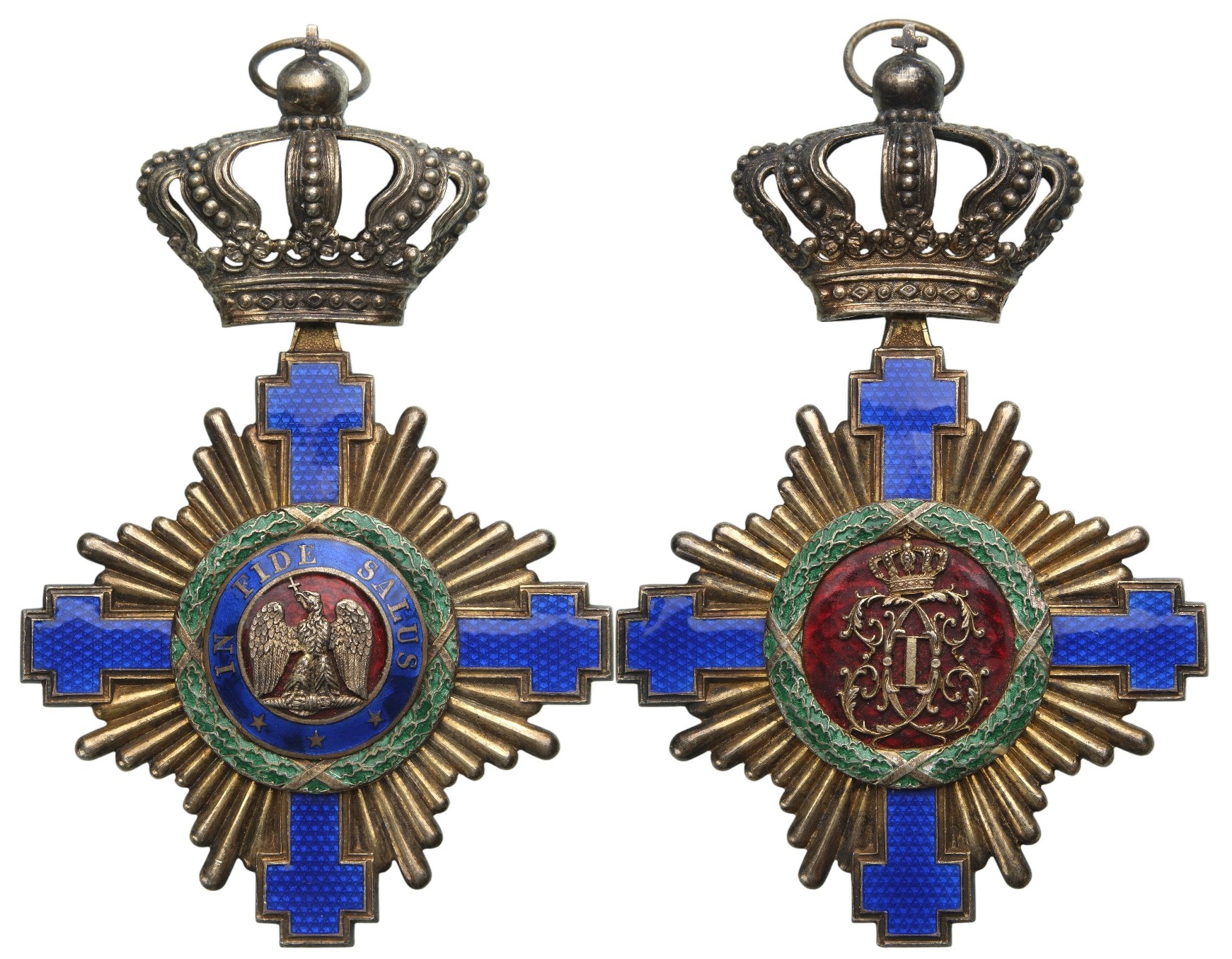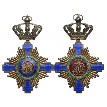 SKU: 1162 The Live Auction begins in: Click here to register for the live Auction Starting price 750 EUR Log in to place a bid. Total bids: 0ROMANIAGrand Cross Badge, 1st Model (1877), for Civil. Sash Badge, 111x71 mm, gilt Silver, both sides enameled, original suspension ring. A superb badge, in best condition! I Shop ID: 69.31Auction LXX - Day 2