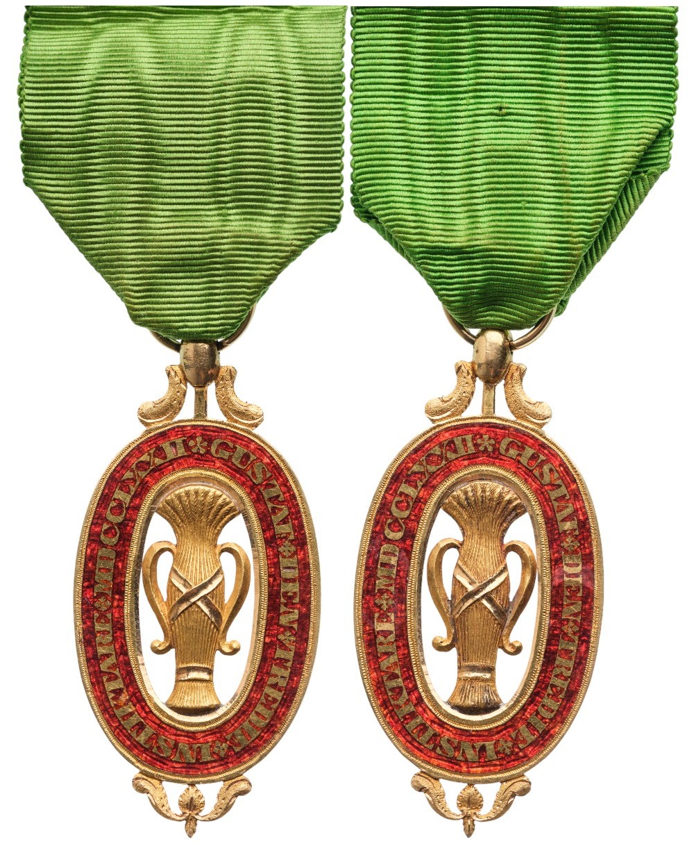 Very rare and pristine condition. This order was founded in 1772 by King Gustav III as a reward to civil merits, in 1866, its insignia went under a total reformation, the badges, from a medallion-type turned in a cross, uniformed to the other Swedish orders, the old insignia went mostly retired by the Chancellery and melt, only very few pieces, mostly awarded to foreigners, survived.