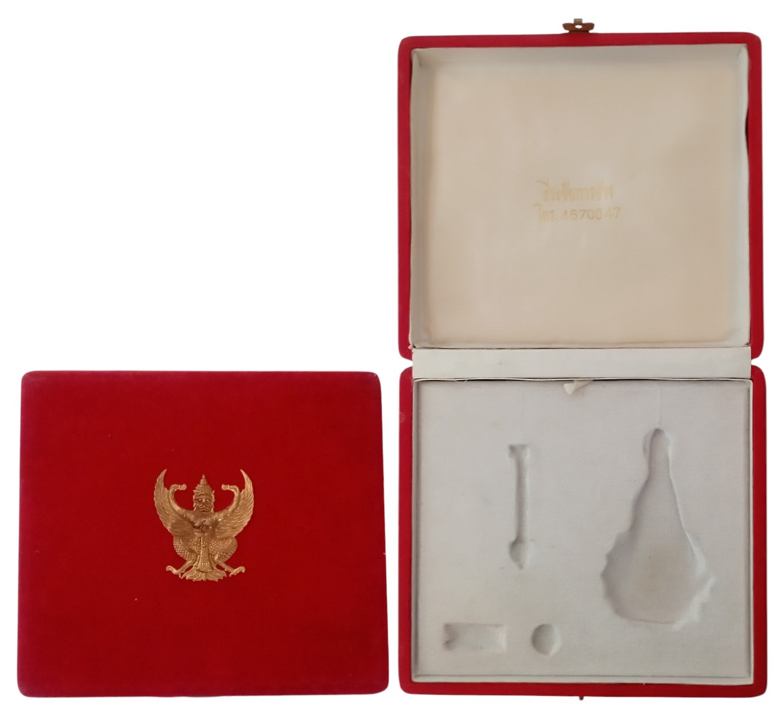 SKU: 1551 The Live Auction begins in: Click here to register for the live Auction Starting price 75 EUR Log in to place a bid. Total bids: 0THAILANDGrand Cross Set Case. Original, case of issue, the lid with gilt Thai divinity and fitted, inner compartment. A beautifully-made velvet box, in excellent condition. I Shop ID: 69,322Auction LXX - Day 2