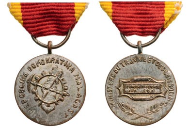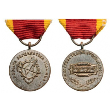 2nd Republic of Madagascar (REPOBLIKA DEMOKRATIKA MALAGASY), instituted in 1960. Breast Badge, 31 mm, silvered Metal, original suspension ring and ribbon. A different fabrication then previous one. I