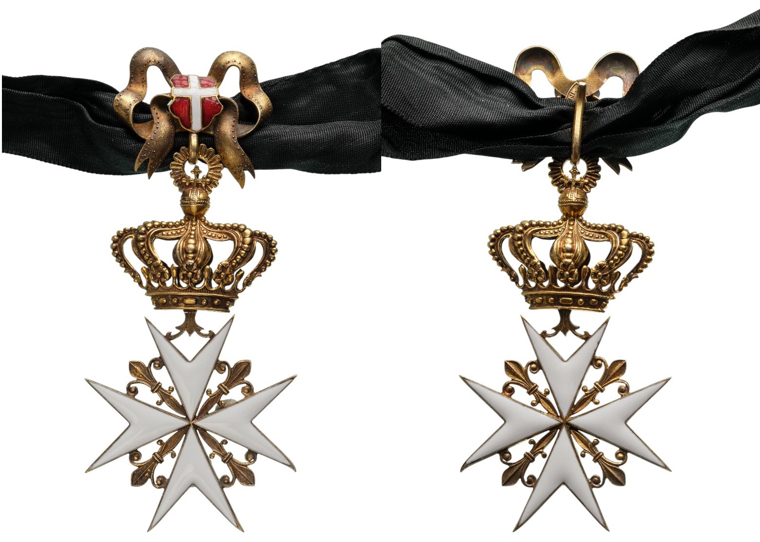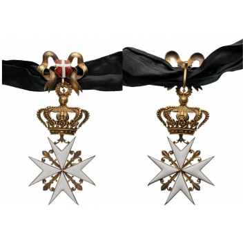 Commander's Cross, Military Division, instituted in 1113. Neck Badge, 149x59 mm, gilt Silver, both sides enameled, with enameled trophy suspension device and neck ribbon. A superb cross in mint condition! I