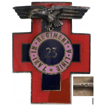 SKU: 1285 The Live Auction begins in: Click here to register for the live Auction Starting price 300 EUR Log in to place a bid. Total bids: 0ROMANIABreast Badge, 51x49 mm, Silver, hallmarked "crown-KK-900", one side enameled, vertical pin on the back. I.M.S.P.R. 104. Very rare and superb! I RR! Shop ID: 58.11.34Auction LXX - Day 2