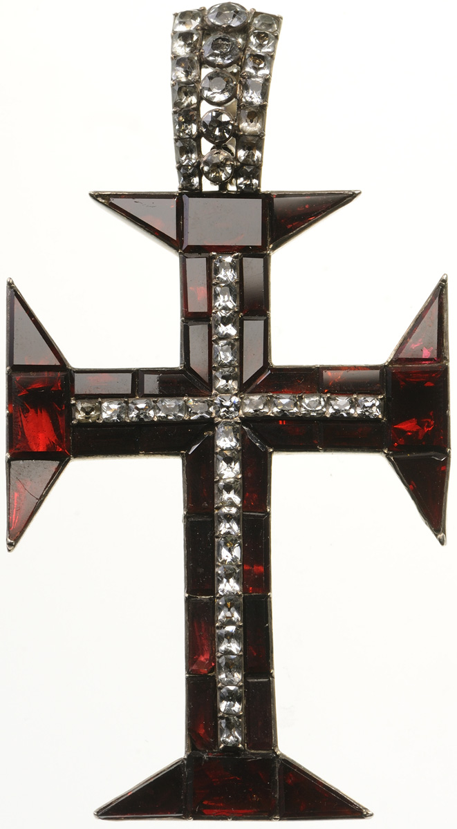A large, jewelled neck badge of the Order in Silver (light traces of the original gilding), set with ruby-red pastes; centre cross, set with white pastes, same as the outer part of the hinged ribbon-ring; A highly elegant piece, extremely fine condition.