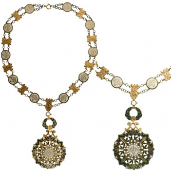 Dim.: the collar, l. 72,0 cm.; the badge, 130,0 x 86,0 mm. I R!