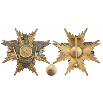Grand Cross Star 1st Model: Breast Star, 92x88 mm, gilt Silver, maker`s mark "Paul Telge - Berlin", hallmarkde "900", the shape of an 8 rays star, eagle in the centre. Old collection patina, very rareI I RR!