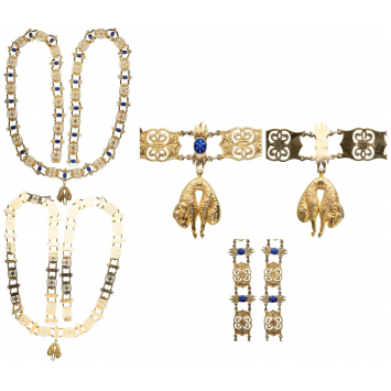 Collar Chain with Collar Badge. Collar Chain with 26 links, 147 cm. and Badge, 47x32 mm., gilt Bronze. Excellent quality and of sumptuous apparence, for replacement or museum's purpose after 1918. Very attractive and spectacular! I