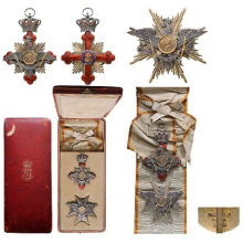 Title Country - Any -ALBANIAAUSTRIABULGARIABULGARIA - Royal Souvenirs with Provenance of H.M. Ferdinand I, Tsar of BulgariaCROATIACZECHOSLOVAKIAGREECEHUNGARYLATVIAMONTENEGROPOLANDROMANIAROMANIA-POPULAR REPUBLICROMANIA-SOCIALIST REPUBLICRUSSIARUSSIA - USSRSERBIASLOVAKIATURKEY . SKU The Order of St. Denis of Zante GREECE EUR 80 SKU: 121 Good Conduct Long Service Medal for the Hellenic A... GREECE EUR 40 SKU: 122 Good Conduct Long Service Medal for the Hellenic A... GREECE EUR 30 SKU: 123 Commemorative Bronze Medal of the War 1940-1941 GREECE EUR 15 SKU: 124 Great Military Merit Medal "Signum Laudis... HUNGARY EUR 7.500 SKU: 125 Order of Merit HUNGARY EUR 80 SKU: 126 Officer's Badge Combat Leadership Military Me... HUNGARY EUR 100 SKU: 127 Leading Miner (Kiváló Bányász) Medal HUNGARY EUR 10 SKU: 128 Order of Lāčplēsis LATVIA EUR 750 SKU: 129 Order Of Vesthardus (Aka Order Of Viesturs) LATVIA EUR 300 SKU: 130 FAMILY ORDER OF ST. PETER MONTENEGRO EUR 3.000 SKU: 131 Order of the Red Cross MONTENEGRO EUR 1.000 SKU: 132 Order of Saint Stanislas (1815) POLAND EUR 2.500 SKU: 133 The Order of Polonia Restituta (Order Odrodzenia P... POLAND EUR 500 SKU: 134 The Order of Polonia Restituta (Order Odrodzenia P... POLAND EUR 500 SKU: 135 The Order of Polonia Restituta (Order Odrodzenia P... POLAND EUR 150 SKU: 136 The Order of Polonia Restituta (Order Odrodzenia P... POLAND EUR 80 SKU: 137 The Order of Polonia Restituta (Order Odrodzenia P... POLAND EUR 50 SKU: 138 The Order of Polonia Restituta (Order Odrodzenia P... POLAND EUR 30 SKU: 139 Medal for Merit on the Field of Glory Miniature, 1... POLAND EUR 10 SKU: 140 Medal for Struggle in the Defense of People`s Rule... POLAND EUR 10 SKU: 141 Medal for Victory and Freedom, 1945 POLAND EUR 10 SKU: 142 Medal of Merit for National Defence, instituted in... POLAND EUR 25 SKU: 143 Peace Guard Medals Baltic, Oder, Neisse, institute... POLAND EUR 20 SKU: 144 Order of Carol I (1906) ROMANIA EUR 9.000 SKU: 145 Order of Carol I (1906) ROMANIA EUR 8.000 SKU: 146 Order of Carol I (1906) ROMANIA EUR 3.000 SKU: 147 ORDER OF FERDINAND ROMANIA EUR 7.500 SKU: 148 ORDER OF FERDINAND ROMANIA EUR 9.000 SKU: 149 ORDER OF FERDINAND ROMANIA EUR 5.000 SKU: 150 Pages« first ‹ previous 1 2 3 4 5 6 7 8 9 10 … next › last »