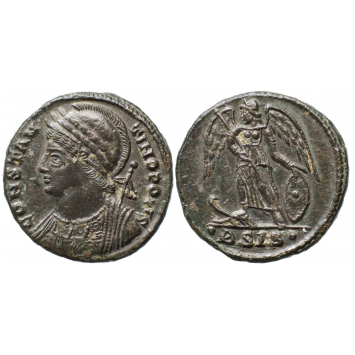 CONSTANTINOPOLIS, laureate and helmeted bust of Constantinopolis left, holding sceptre / Victory standing left, foot on prow, holding sceptre and resting hand on shield; •ASIS• in exergue. RIC 241. UNC