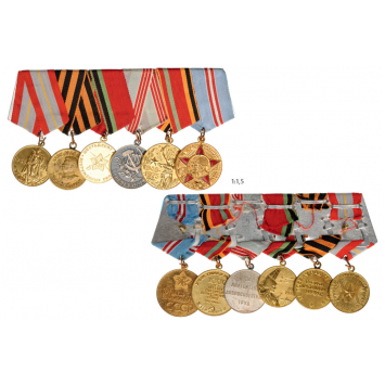 20 Years Jubilee Medal for the Victory in the Great Patriotic War 1945, Victory over Germany, 60 Years Jubilee of the Army, Veterans of Labor, 30 Years Jubilee Medal for the Victory in the Great Patriotic War 1945, 50 Years Jubilee of the Army. Reverse with screw and nut. I
