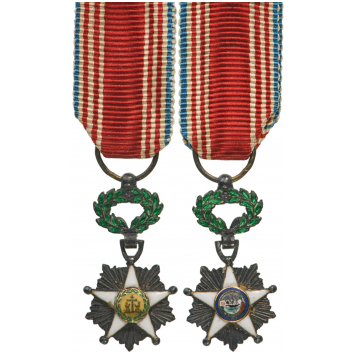 Knight's Cross Miniature, 5th Class, instituted in 1879. Breast Badge, 23x12 mm, Silver, central medallion GOLD, enameled, original suspension wreath, ring and ribbon. A splendid and rare miniature of best jeweler's quality! I- R!
