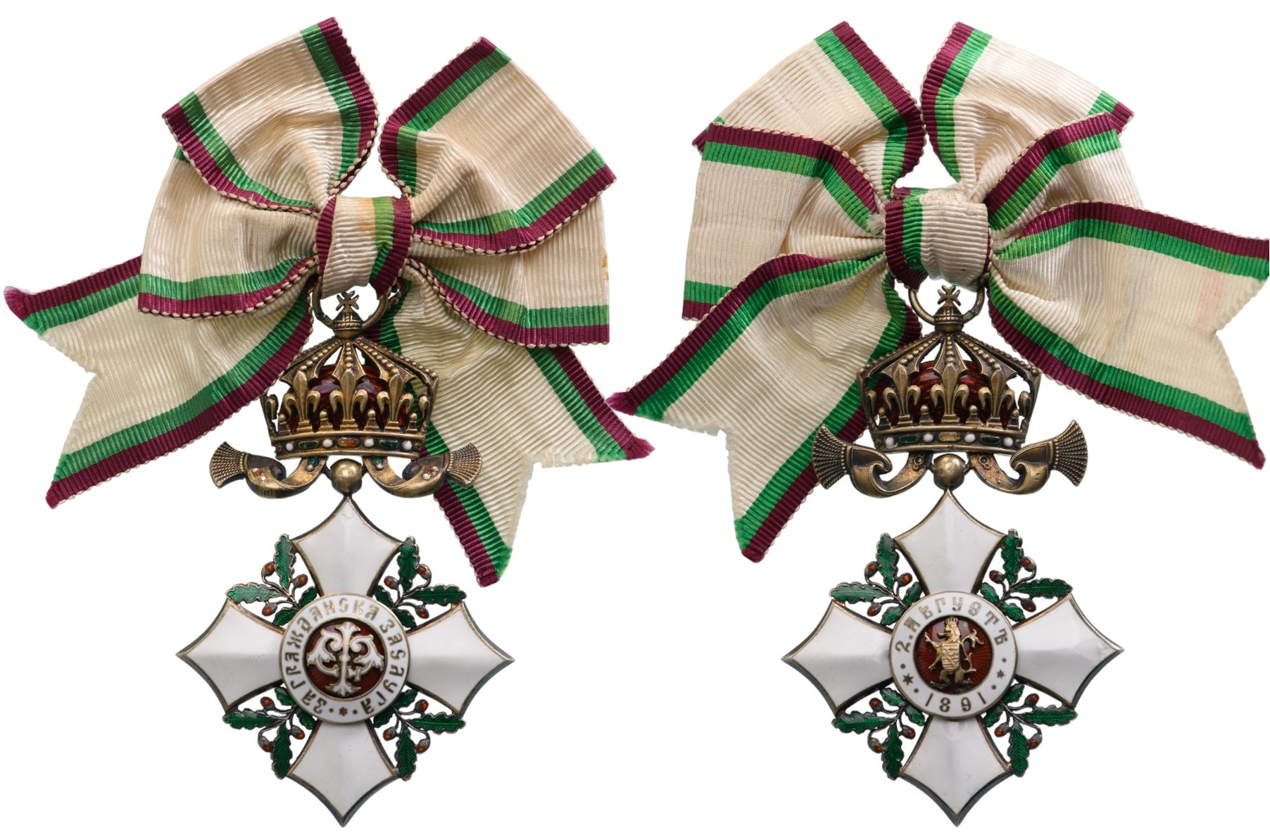 Dames Cross, 1st Class with Crown, 2nd Model. Breast Badge, 57x48 mm, gilt Silver, central medallion enameled, original suspension ring and ribbon with bow. A rare badge of best quality, and extremely fine condition! I R!