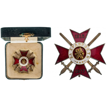 4th Class, 1st Grade, 3rd Model, 1915 - 1918. Breast Badge, 48 mm, silvered Metal, central medallion enameled, original pin on reverse, in original case of issue with inscription on the lid. A rare badge in best quality! I R!