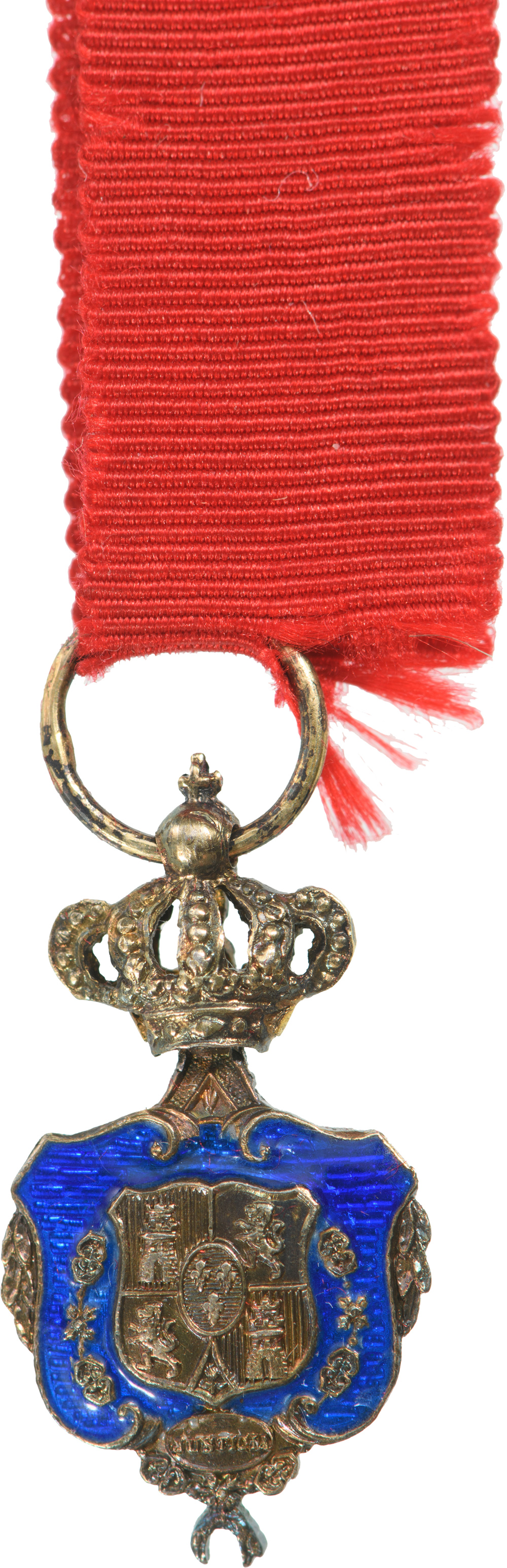 SKU: 2158 Auction has finished. Total bids: 0SPAINBreast Badge, 18x12 mm, gilt Silver, one-side enameled, original ring and ribbon. Scarce, extremely fine condition! I R! Shop ID: POZATAAuction LIX - Day 2