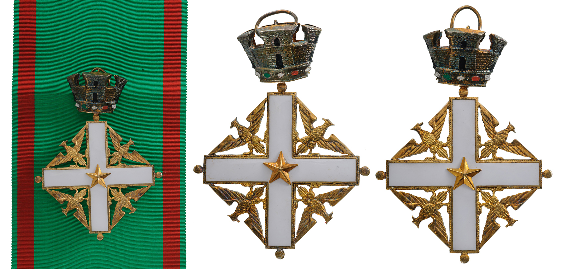 Grand Cross Badge, 1st Class, 1st Type, instituted in 1951. Sash Badge, 94x71 mm, gilt Silver, both sides enameled, both central medallions gilt, enameled, original suspension ring and short sash. Rare and superb badge! R! I