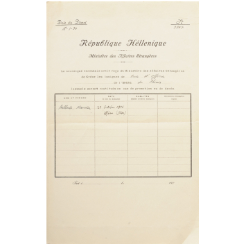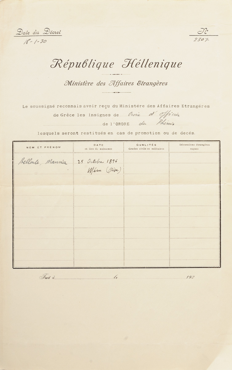 SKU: 1340 Auction has finished. Total bids: 0GREECEOfficer`s Cross Awarding Document. Letters, 267x212 mm, dated 26th of Februaury 1980 in Paris, for for the famous pilot Maurice Belonte. (2) I Shop ID: 54952Auction LIX - Day 2