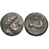 Stylized head of Zeus with laurel wreath to the right/ Stylized horseman to the right, monogram below. Pink 429, Lanz 723, Flesche 563. XF, superb patina!