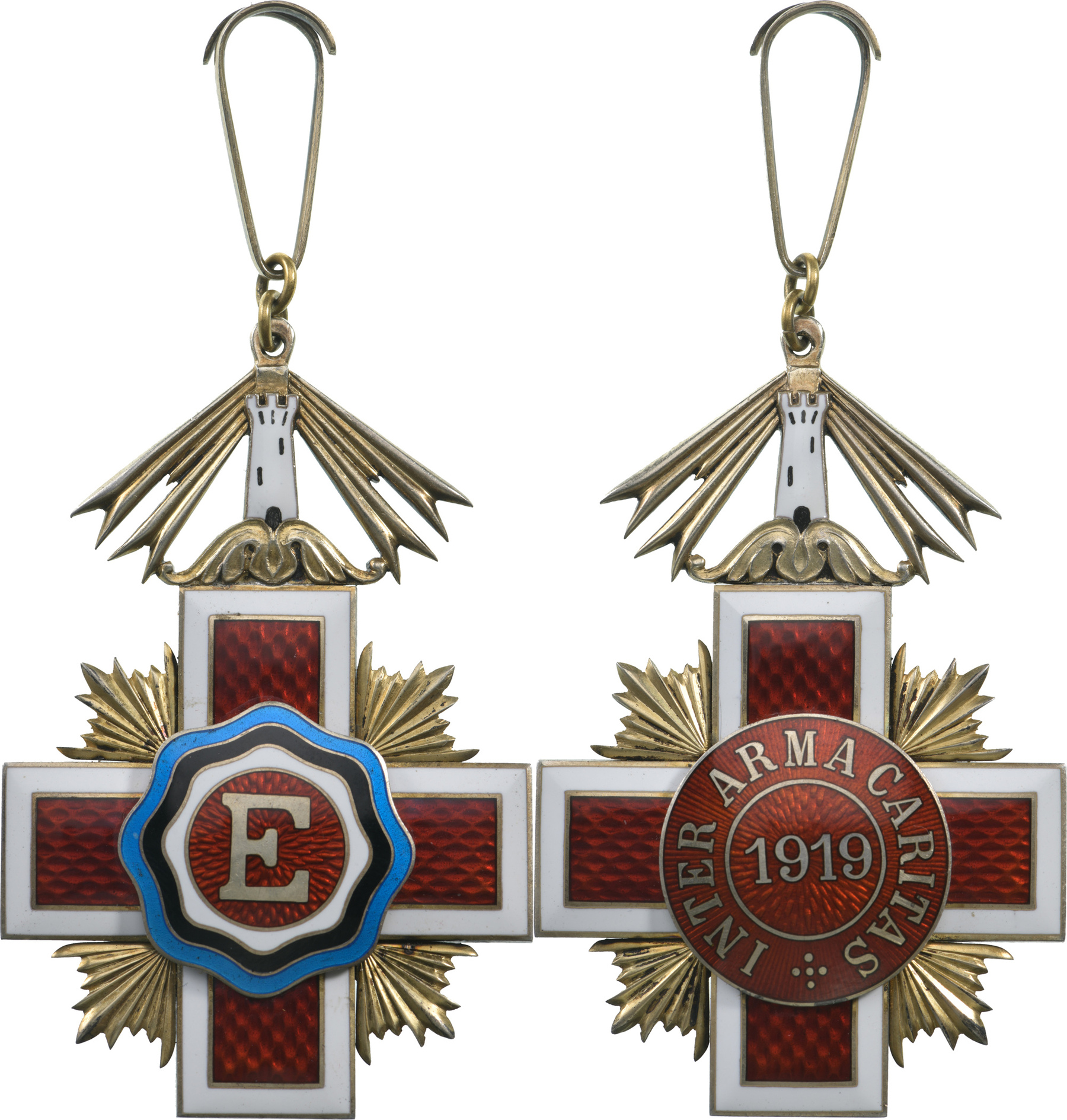 Commander's Cross, 3rd Class. Neck Badge, 68x45 mm., gilt Silver, enameled, central medallion gilt, enameled, original gilt suspension loop. Mint condition and rare! I R!