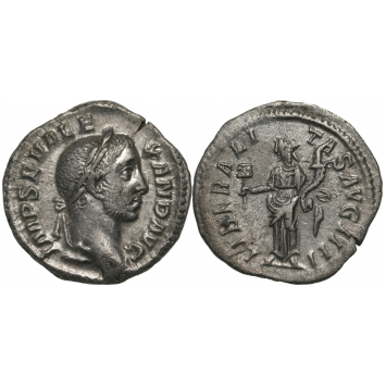 IMP SEV ALEXAND AVG, Laureate, draped and cuirassed bust right / LIBERALITAS, Liberalitas standing left, holding abacus and cornucopia. RIC IV 281, BMCRE 1043, RSC 108b. XF
