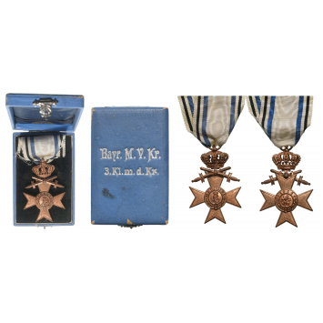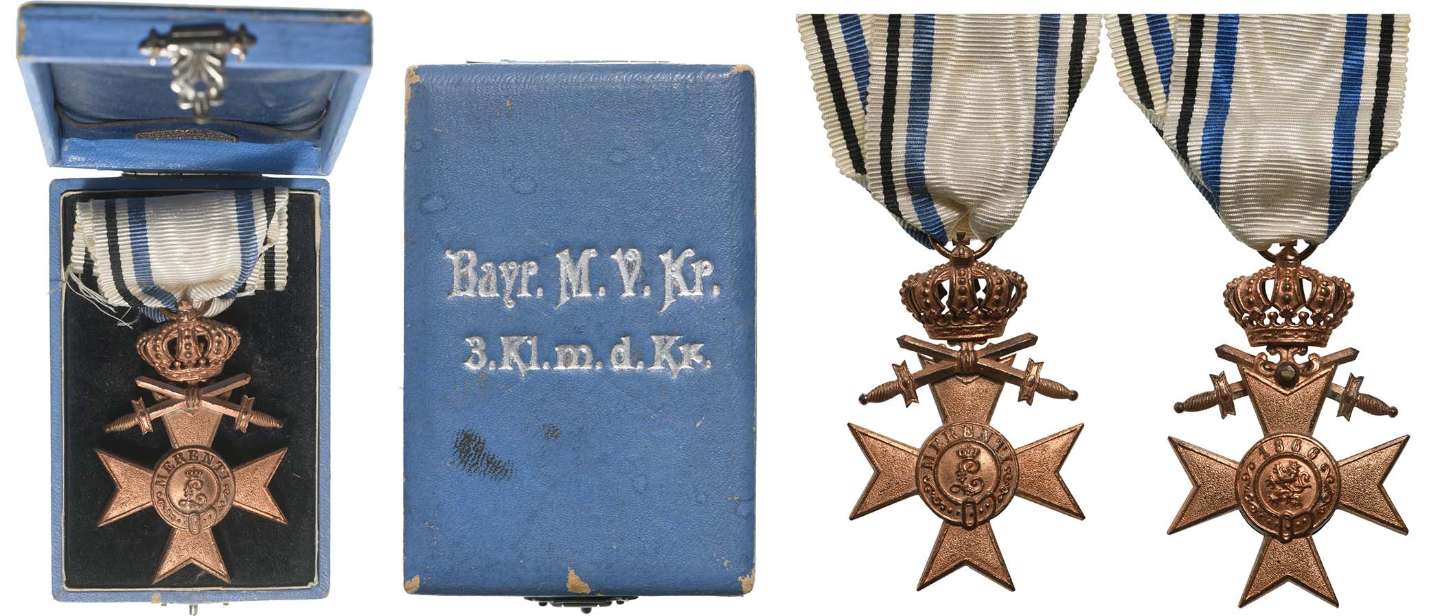 Breast Badge, 64x42 mm, Copper, original swords suspension, ring and ribbon, in case of issue with silvered inscription on the lid, by "L. Chr. Lauer, Nurnberg - Berlin. Superb and mint state! I