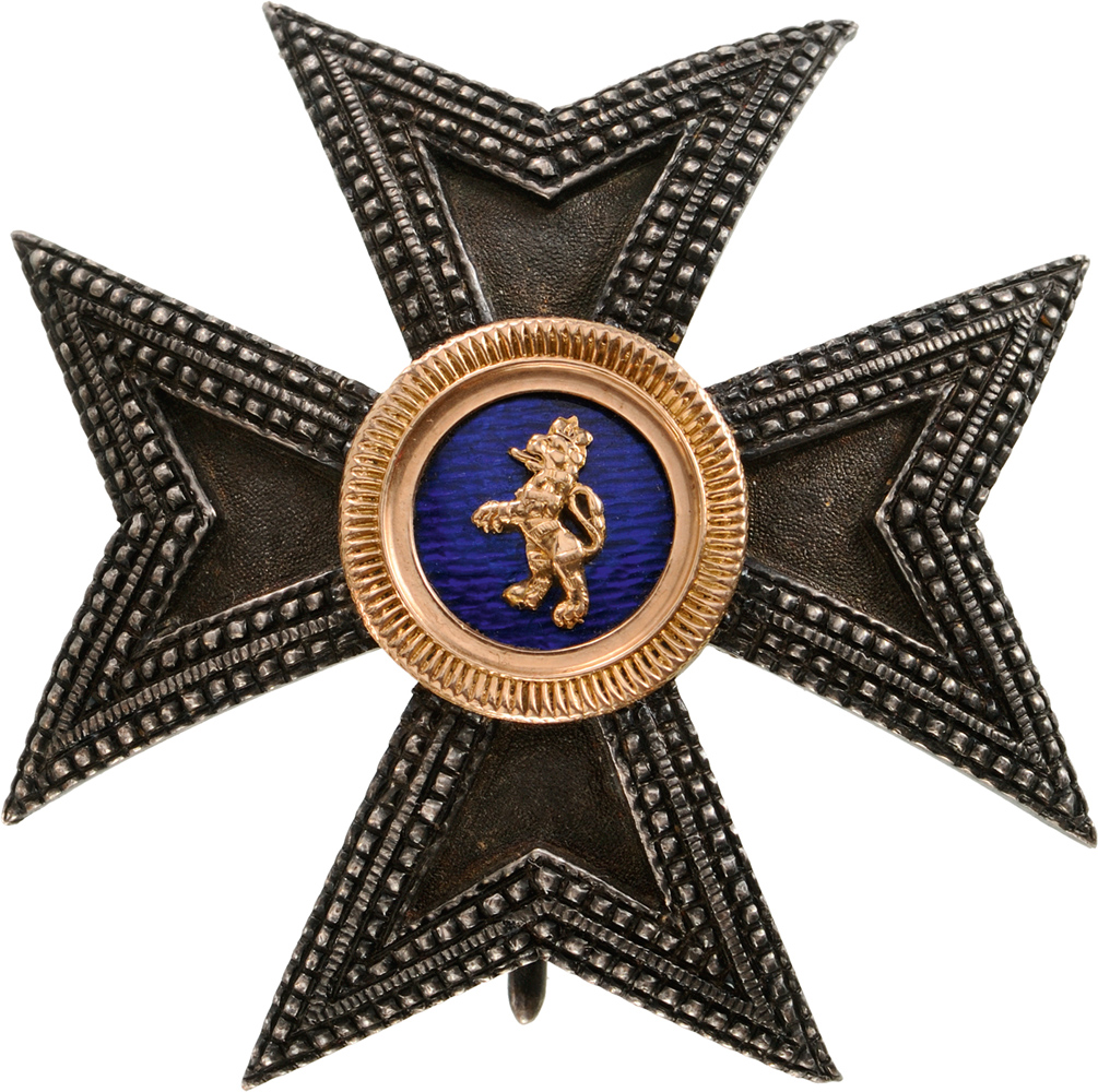 An early Prince size Commander`s 1st Class, 46 mm, Breast Star of the order in Silver: alterned smooth and diamond-cut rays, gold centre medallion with the Order`s lion in gold and blue enamel, within thick, grooved gold outer circlet, reverse vertical pin. A very elegant, rare star, dating to the second half of the 19th Century, excellent condition. The House Order of the Golden Lion was instituted by Landgraf Friedrich II of Hesse Kassel and was dedicated to Saint Elisabeth of Hungary, an ancestor of the founder. The Order was conferred upon individuals who demonstrated exceptional civil or military merit. I RR!