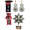 Grand Cross Set, 1st Class, instituted in 1922. Sash Badge, 89x62 mm, Silver, enameled, original suspension ring and long complete sash. Breast Star, 98 mm, Silver, maker`s mark "Briquet - Paris", superimposed parts enameled, center medallion silver gilt, on reverse large pin and two side hooks. In original case of issue by "Pouteau Fayolle - Paris". An extremely rare set of high French jeweler`s quality manufacture, in extremely fine condition! I-/I RR!
