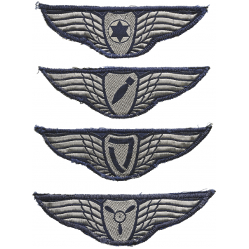 10 Wings of the Israeli Air Force : Pilot, Light squadron, 2x Navigator, Gunner, 3x Flight Engineer, Radio Operator, Bombardier. Breast Badges, cloth, most of the badges 30x100 mm approximately and one 30x65 mm. (10)