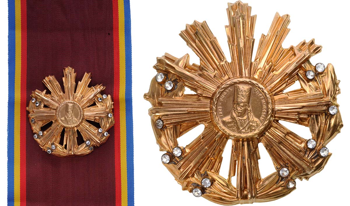 1st Class (1966). Breast Star, 66 mm, GOLD with Pastes, 52 g, center enameled, 10 groups of rays, reverse with horizontal pin, in the centre bust of Tudor Vladimirescu within a wreath of oak leaves and luxury sash for foreign Presidents and High Ranking Diplomats. A very rare star in mint condition! I RR!
