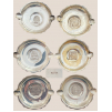 Amusing series composed of six silver living room ashtrays, model in molded cups with a flat bottom with two cigarette rests, relief medallion stamped with Inca mythological sym-bols. Guarantee 925, Peru's work probably intended for the American market. Diameter 7,2 cm rests included, weight 16 g each. Good condition