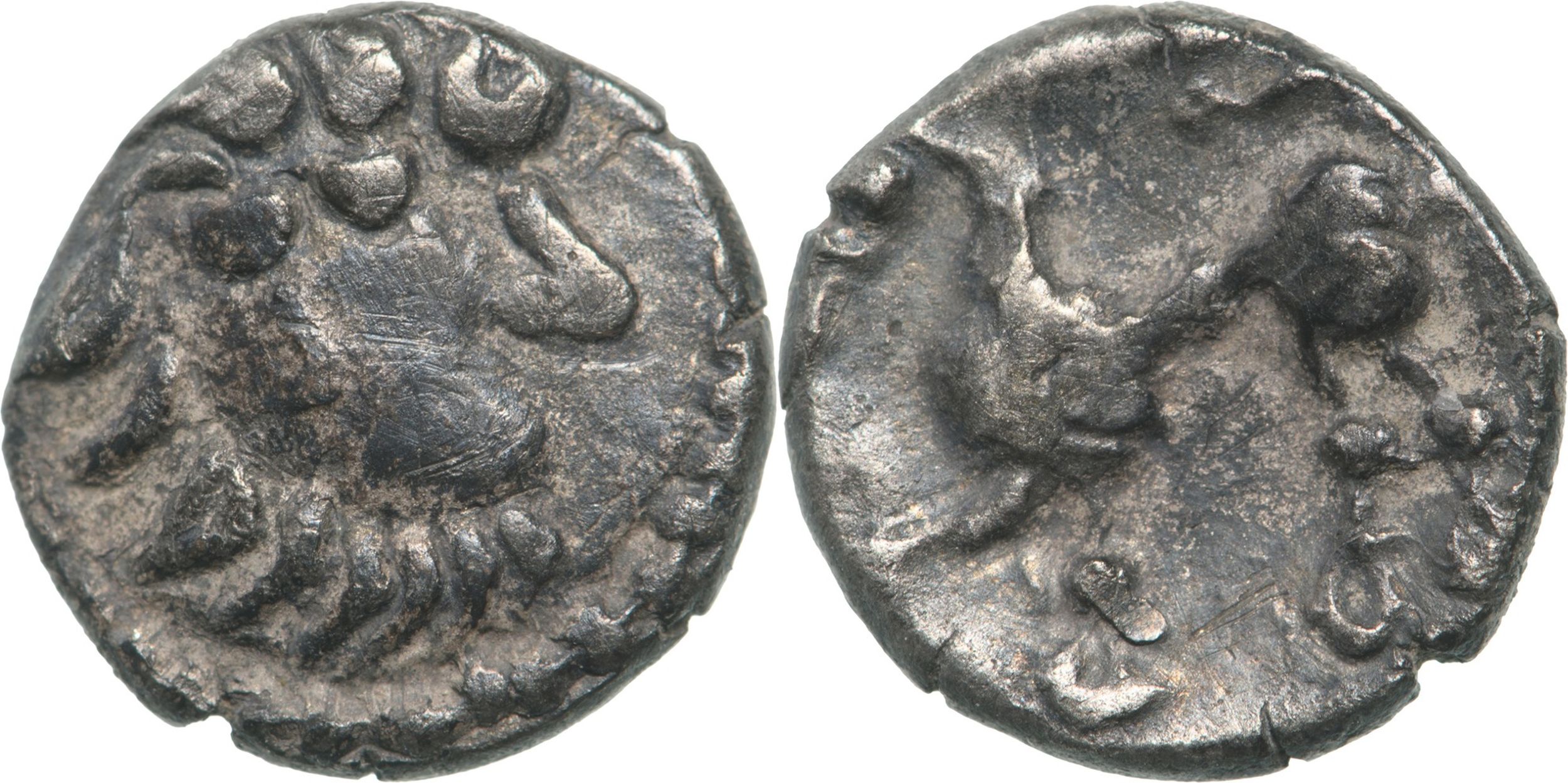 SKU: 17 Auction has finished. Total bids: 3ANCIENTS - CELTIC COINSHead right / Stylized horse left. Slg. Flesche 576. XF, superb dark patina! Shop ID: TZ 80Auction LVI - Day 1