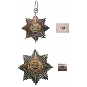 2nd Class Set. Neck Badge, 65x60 mm, Silver, central medallion gilt silver, original suspension loop. Breast Star, 77 mm, Silver, superimposed part gilt silver, reverse with long vertical pin. Extremey fine and rare set! I R!