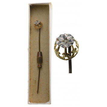 SKU: 1418 Auction has finished. Total bids: 0FRANCE18 k GOLD pin set with one diamond in the center. Beautiful French work in original case from "Maison Dumont-H. MEYLAN Succ". Superb! I- Shop ID: HM 1Auction LVII - Day 2