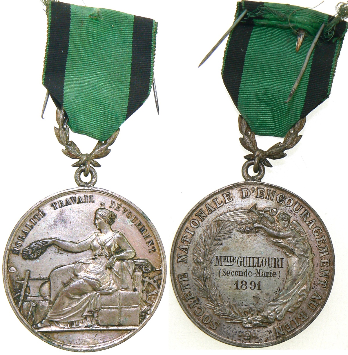 SKU: 1395 Auction has finished. Total bids: 0FRANCELarge Model. Breast Badge, named, 36 mm, silvered Bronze, original suspension ring and ribbon. Attractive! II Shop ID: 70756Auction LVII - Day 2