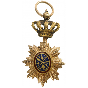 Officer's Cross Miniature, 4th Class, instituted in 1864. Breast Badge, 21x12 mm, GOLD, entirely repierced, central medallion GOLD, enameled, original suspension ring. A splendid miniature of best jeweller's quality! I