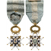 Officer`s Cross, 1819-1838, 1st Type, 4th Class, instituted in 1771. Breast Badge, 56x37 mm, GOLD, 12.9 g., both sides enameled, both central medallions GOLD, enameled, original suspension ring and ribbon with rosette. A very rare early model, of superb quality! I RR!
