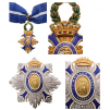 Jewelled Commander`s Group of the period 1942-1975. Neck Badge,73x49 mm, in GOLD and enamels, the crown, set with brilliants, red and green stones, green enameled laurel wreath and large ribbon ring, with original neck ribbon with ties. Breast Star in Silver, the centre in gold and enamels, the medallion, surrounded with a border, completely set with brilliants, polished reverse, with vertical pin and two hooks. With 61 diamonds for a total of 0.99 ct.An important set, extremely fine condition.I RR!