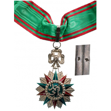 Commander's Cross, 3rd Class, Sidi Ahmed (1929 - 1942). Neck Badge, 82x57 mm, silver, partially enameled, original suspension ring, loop and ribbon. A beautiful luxury fabrication, extremely fine condition. I