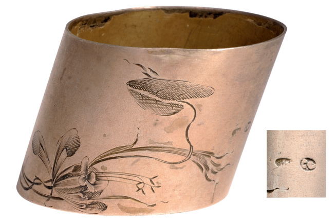 SKU: 2245 Auction has finished. Total bids: 0RUSSIAEngraved by a floral motive, weight 40 g, "84" standard guarantee, town`s mark illegible, silversmith "C.?" partially erased. R! Shop ID: 3695Auction LVII - Day 3