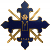 1st Class, 3rd Model. Breast Star, 58 mm., gilt Silver, one side light blue enameled trefoiled cross with golden edges, the cipher of King Michael I and two crossed swords, thin pin on the back. Extremely rare model awarded to foreigners only, instituted in 1941 after closing the old order from 1916, of best manufacture and condition ! I RR!