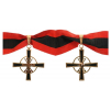 Commander’s Cross of the Order, 58 mm, GOLD, 18.97 g., first model, enclosing a cross made of polished, black onyx, a golden circle flanks the arms and the centre is charged with the red enameled symbol of a yoke bearing the motto “CAESARIS CAESARI DEI DEO” (to Caesar what’s Caesar’s, to God what’s God’s), the reverse, fitted with convex countermedallion acting as retainer of the obverse’s centre, upper, sphaerical loop, round ring and ornamented, tapering ribbon ring, with original, red silk ribbon. A rare decoration of the highest order of Franco’s Spain, excellent condition. I R!