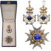 Grand Cross Set, 1st Class, instituted in 1748. Sash Badge, 80x55 mm., GOLD, both sides enameled, both central medallions GOLD, enameled, original suspension loop. Breast Star, 82 mm., Silver, superimposed parts enameled, horizontal pin on reverse, in case with inner fitting missing. Superb old set, of high jeweller's quality! I R!